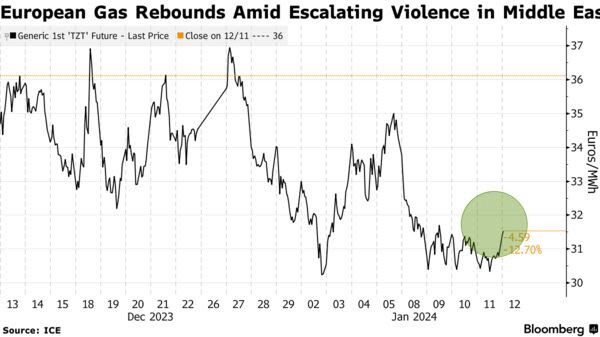 Τα συμβόλαια μελλοντικής εκπλήρωσης για το φυσικό αέριο αυξάνονται, με την προσδοκία ότι τα δεξαμενόπλοια LNG που πλέουν από το Κατάρ προς την Ευρώπη, τα οποία εξακολουθούν να χρησιμοποιούν τη διαδρομή αυτή παρά τις επιθέσεις των Χούθι, στην εμπορική ναυτιλία στην περιοχή, θα αρχίσουν επίσης να εκτρέπονται.