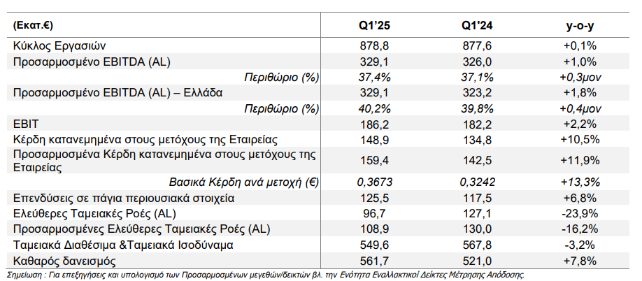 Οπως αναφέρει, η ανακοίνωση είχε δυναμικό ξεκίνημα στην Ελλάδα το 2025, με αύξηση κατά 1% στα έσοδα και κατά 1,8% στο προσαρμοσμένο EBITDA (AL) o Συνεχίζεται η θετική δυναμική στην κινητή: αύξηση 1,2% στα έσοδα από υπηρεσίες και 6,1% στους συνδρομητές συμβολαίου o Σημαντική βελτίωση στα έσοδα από υπηρεσίες λιανικής σταθερής o Διψήφια αύξηση των εσόδων από υπηρεσίες τηλεόρασης o Θετικές επιδόσεις στο FTTH: οι συνδρομητές FTTH ανήλθαν σε 430χιλ. – ισχυρή αύξηση στο τρίμηνο κατά 36χιλ. o Διαθεσιμότητα FTTH σε περίπου 1,8 εκατ. νοικοκυριά κι επιχειρήσεις, με το ποσοστό διείσδυσης να αυξάνεται σε 29%