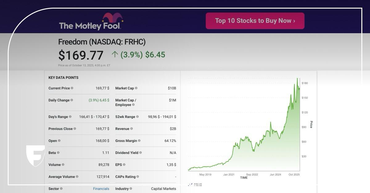 Η Freedom Holding Corp., (NASDAQ: FRHC), ένας πολυδιάστατος παγκόσμιος όμιλος χρηματοοικονομικών υπηρεσιών και τεχνολογίας και μητρική εταιρεία της Freedom24, γιορτάζει έξι χρόνια από την εισαγωγή της στο χρηματιστήριο Nasdaq. Παράλληλα, ανακοινώνει ότι οι μετοχές της έχουν προστεθεί στο επενδυτικό χαρτοφυλάκιο Moneyball, το οποίο διαχειρίζεται η εταιρεία έρευνας και επενδυτικών συμβουλών The Motley Fool. Μάλιστα, η μετοχή της εταιρείας έλαβε και σύσταση «Αγοράς» (Buy).