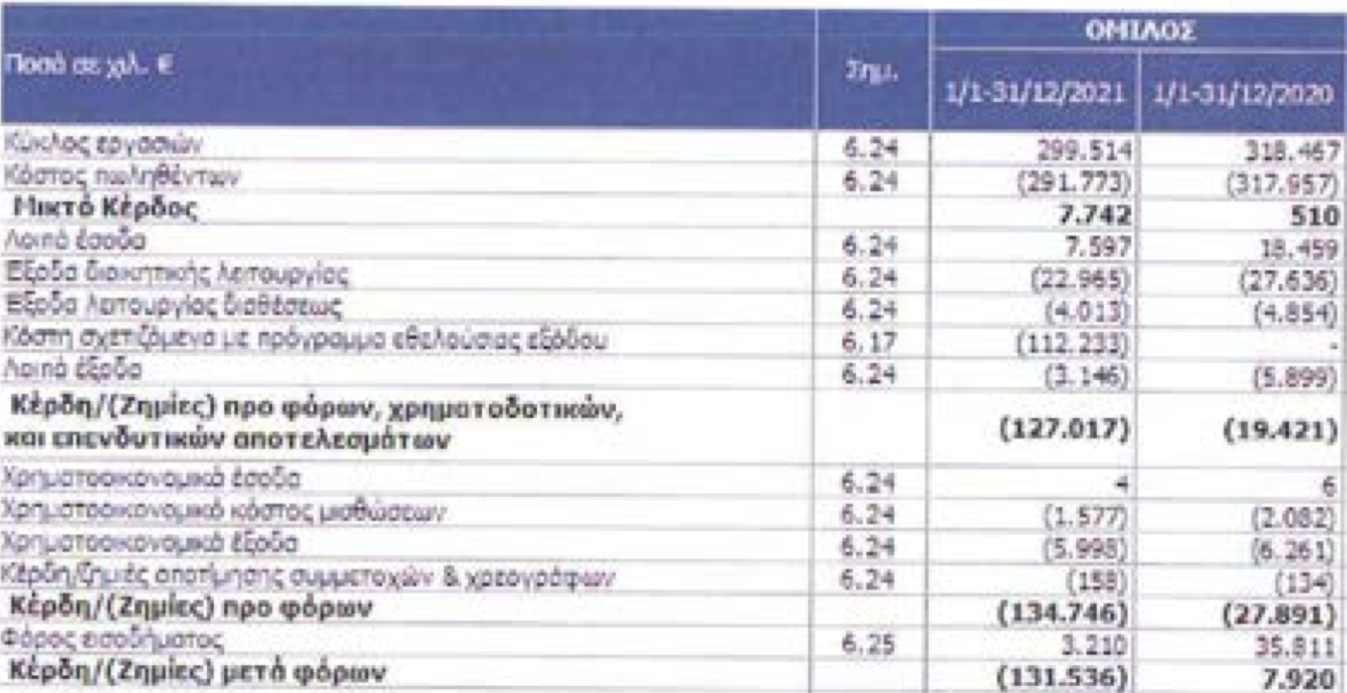 - 2021: ζημιές 131,5 εκατ.