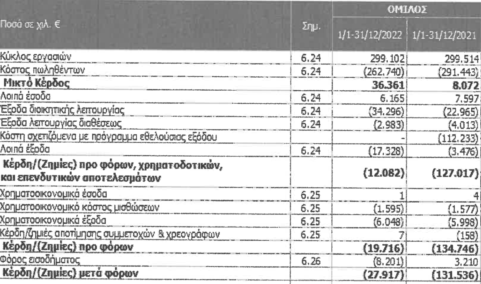 - 2022: ζημιές 27,917 εκατ.