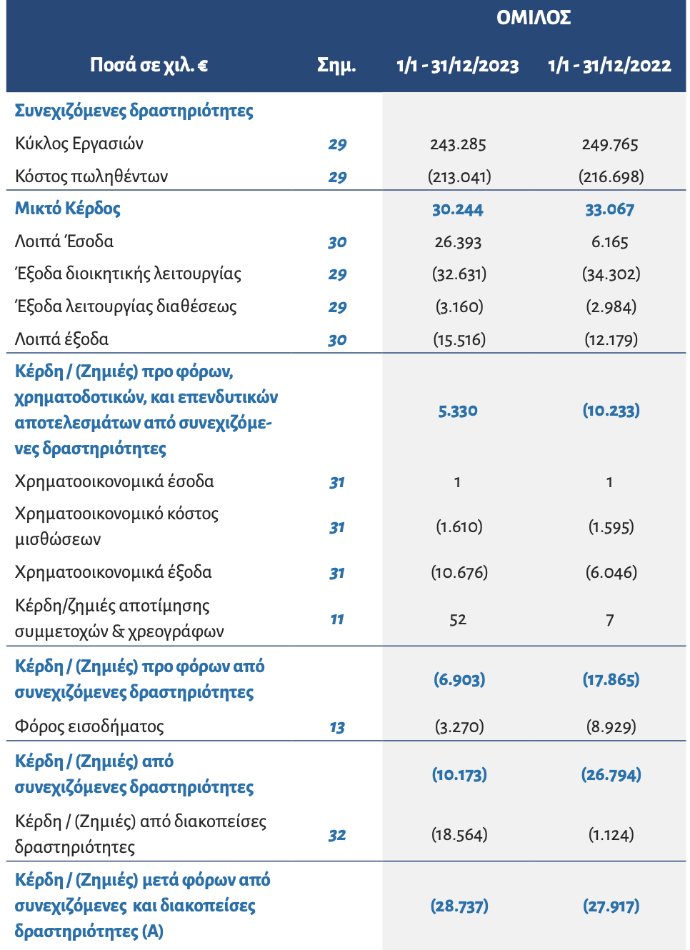 - 2023: ζημιές 28,73 εκατ.