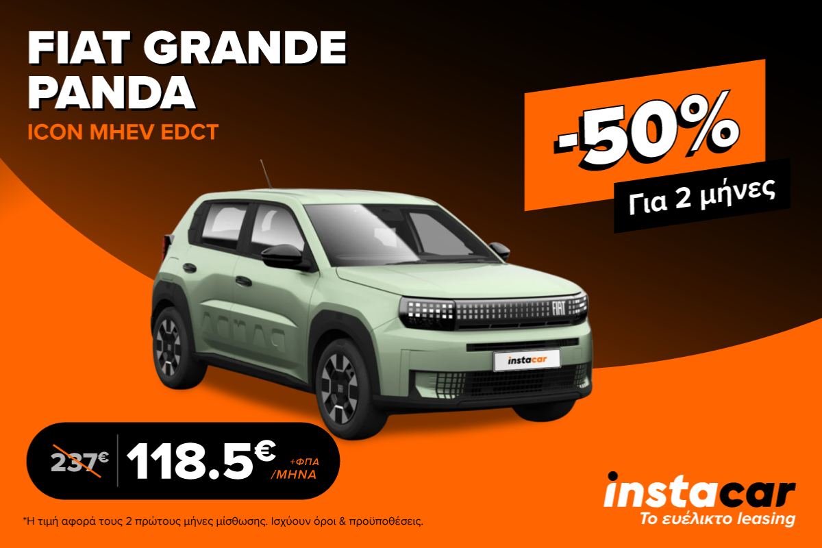 Η καλύτερη ευκαιρία για να ξεκινήσει κανείς leasing είναι φέτος τον Δεκέμβριο αφού το instacar προσφέρει το υπέροχο Fiat Grande Panda, το πιο πρακτικό και στυλάτο SUV πόλης με -50% για τους 2 πρώτους μήνες συνδρομής!