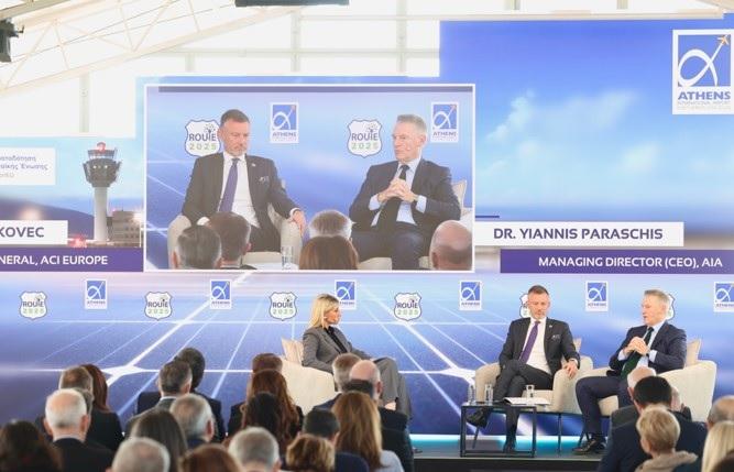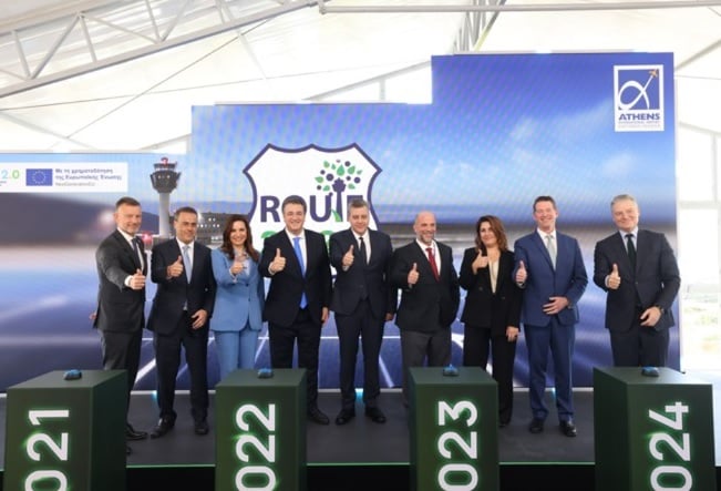 Η παρουσίαση για την ολοκλήρωση του προγράμματος «ROUTE 2025» πραγματοποιήθηκε στις 12/12/2025 στον Διεθνή Αερολιμένα Αθηνών σε ειδική εκδήλωση με φόντο το φωτοβολταϊκό σύμπλεγμα συνολικής ισχύος 51,5 MWp, παρουσία του Επιτρόπου Μεταφορών & Τουρισμού, του Υπουργού Περιβάλλοντος & Ενέργειας, του Υπουργού Υποδομών & Μεταφορών, της Υπουργού Τουρισμού, εκπροσώπων του κλάδου των αερομεταφορών και του τουρισμού, της επιχειρηματικής κοινότητας, φορέων και συνεργατών της αεροδρομιακής κοινότητας. Η εκδήλωση ολοκληρώθηκε με την ομιλία του Ακαδημαϊκού και Καθηγητή Γεωγραφίας και Κλιματολογίας, Χρήστου Ζερεφού, με τίτλο «Αερομεταφορές και Κλιματική Αλλαγή».