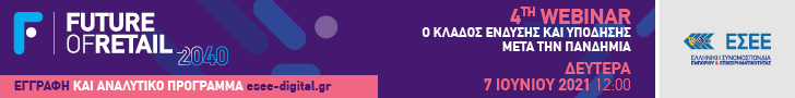 Ξεκίνησε το Webinar που διοργανώνει η Ελληνική Συνομοσπονδία Εμπορίου και Επιχειρηματικότητας, σήμερα Δευτέρα, 7 Ιουνίου, με θέμα «Ο κλάδος ένδυσης και υπόδησης μετά την πανδημία».