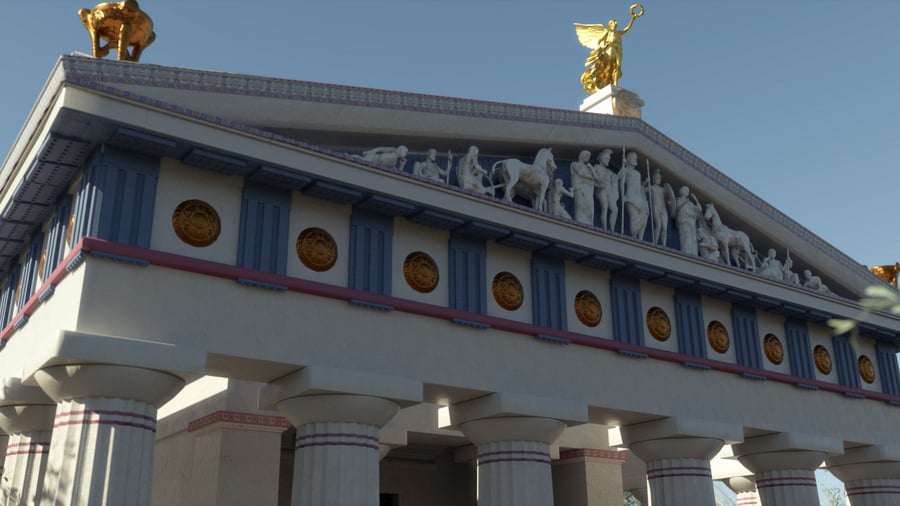 Παράλληλα, το έργο αποκαθιστά ψηφιακά 27 μνημεία, μεταξύ αυτών το Στάδιο, τους ναούς του Δία και της Ήρας και το εργαστήριο του Φειδία, ενώ επιτρέπει στον επισκέπτη να περπατήσει στους δρόμους του ιερού σε μια από τις πιο σημαντικές περιόδους της ιστορίας.