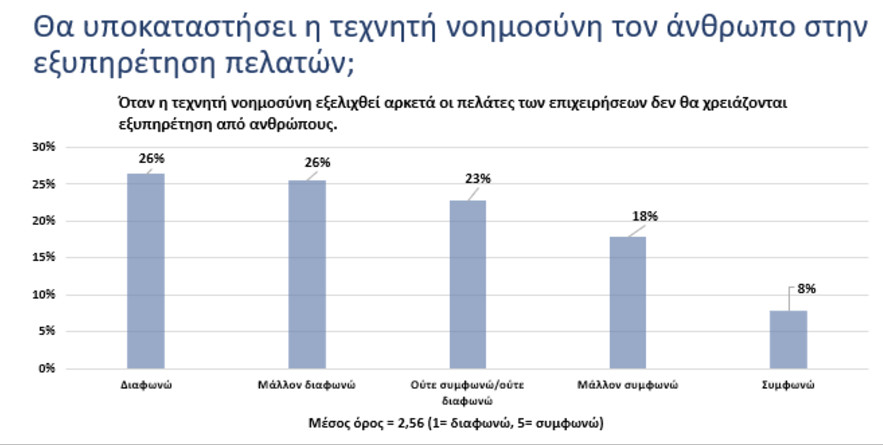 Οι καταναλωτές πάντως δεν συμφωνούν με την άποψη ότι η τεχνητή νοημοσύνη μπορεί να υποκαταστήσει πλήρως τον ανθρώπινο παράγοντα στην εξυπηρέτηση πελατών.