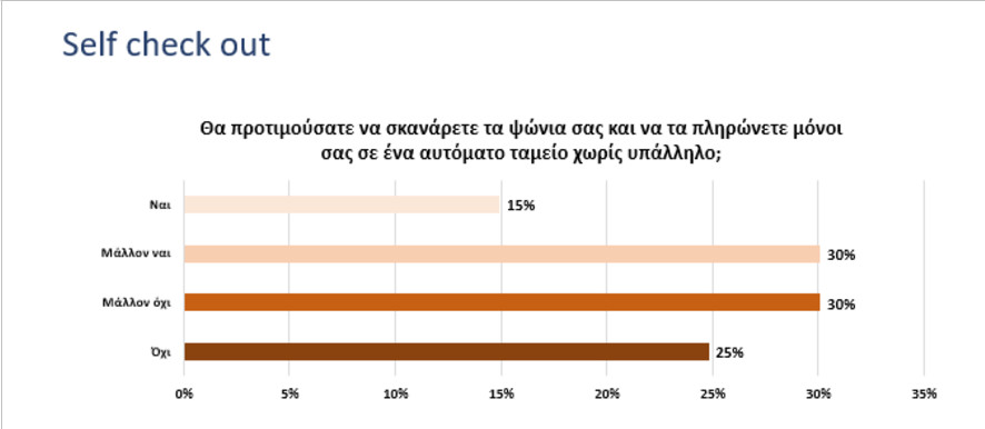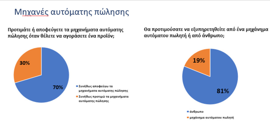 Η πλειονότητα των ερωτηθέντων (70%) αποφεύγει τα μηχανήματα αυτόματου πωλητή και προτιμά (81%) την ανθρώπινη εξυπηρέτηση στην πώληση.