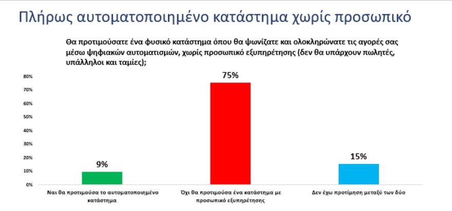 Η πλειοψηφία των καταναλωτών (75%) προτιμούν ένα φυσικό κατάστημα με προσωπικό εξυπηρέτησης έναντι ενός πλήρως αυτοματοποιημένου.