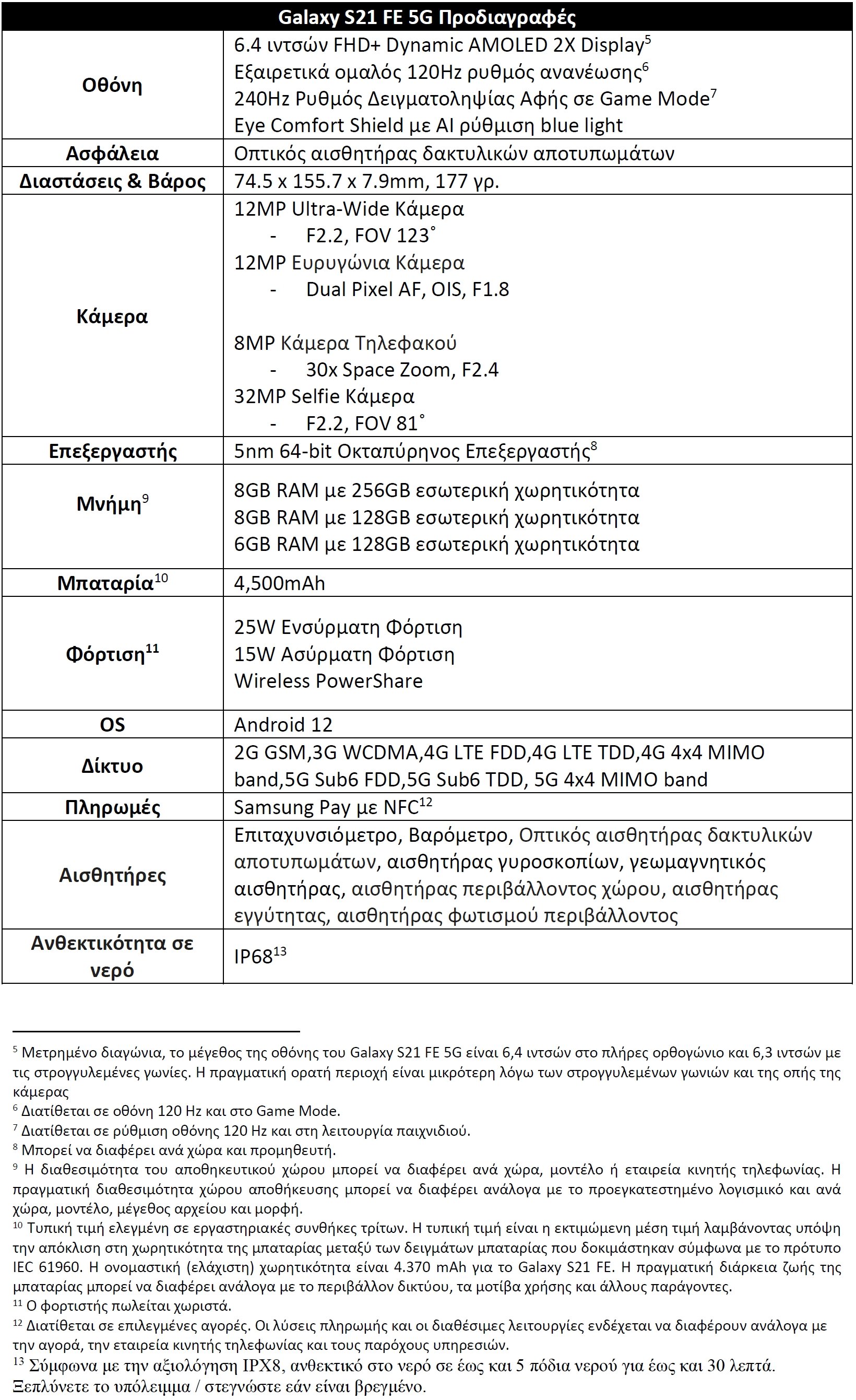 Για περισσότερες πληροφορίες επισκεφθείτε: https://www.samsung.com/gr/smartphones/galaxy-s21-5g/galaxy-s21-fe-5g/