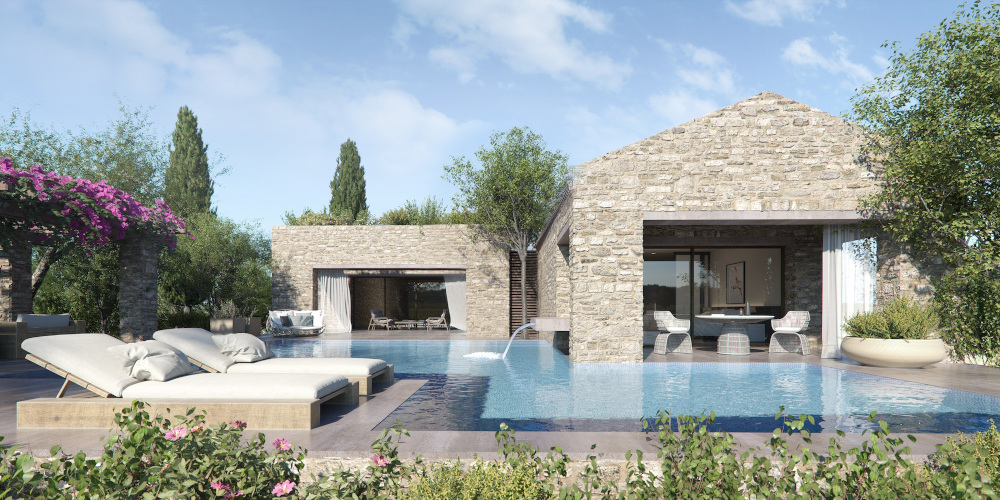 Οι βίλες στην Olive Grove έχουν πανοραμική θέα στο Ιόνιο πέλαγος, στο γήπεδο The Dunes Gourse και στους ελαιώνες, και διαθέτουν 4-6 υπνοδωμάτια.