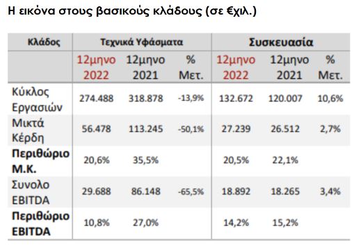 Ο τζίρος ανήλθε σε €394,4 εκατ. (-7,9%), τα μικτά κέρδη σε €84,26 εκατ. (-40%), τα EBITDA σε €48,26 εκατ. (-53,5%) και τα καθαρά κέρδη σε €26,23 εκατ. (-63,8%). Πάντως, όπως σημειώνεται από τη διοίκηση, ο Όμιλος εμφάνισε πέρυσι ισχυρή λειτουργική κερδοφορία, σχεδόν διπλάσια από τα προ πανδημίας επίπεδα και αυτό παρά το έντονα δυσχερές εξωτερικό περιβάλλον.