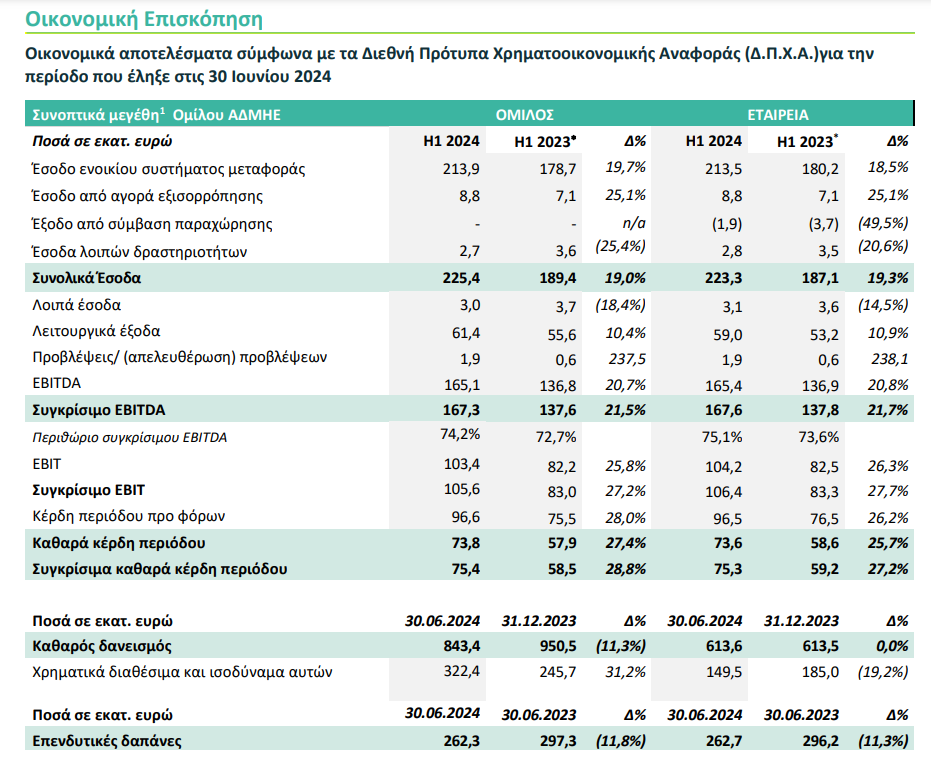- Το ενοποιημένο EBIT ανήλθε σε 103,4 εκατ. ευρώ το α’ εξάμηνο 2024, έναντι 82,2 εκατ. ευρώ την αντίστοιχη περίοδο του 2023, αυξημένο κατά 25,8%. με τις αποσβέσεις να αυξάνονται κατά 12,9% στα 61,7 εκατ. ευρώ, γεγονός που οφείλεται στις παγιοποιήσεις έργων που ολοκληρώθηκαν το 2023 και στις προσθήκες παγίων.