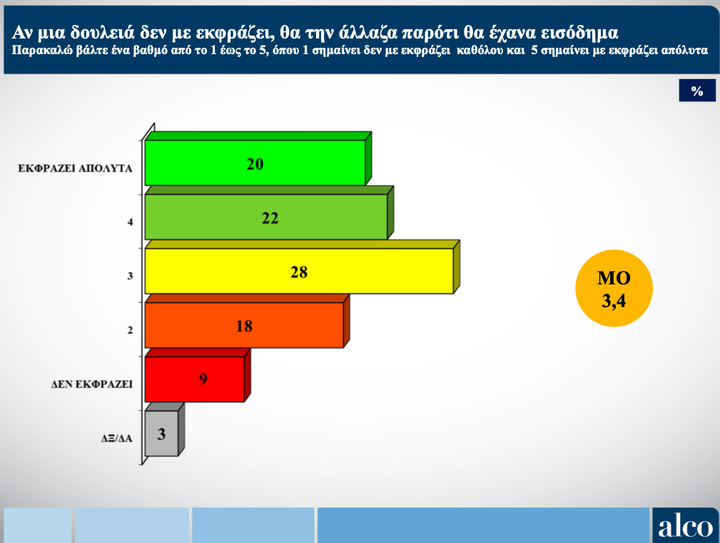 Ένα 44% δηλώνει έτοιμο να αλλάξει δουλειά αν αυτή δεν τον εκφράζει, ακόμη και με απώλεια εισοδήματος.