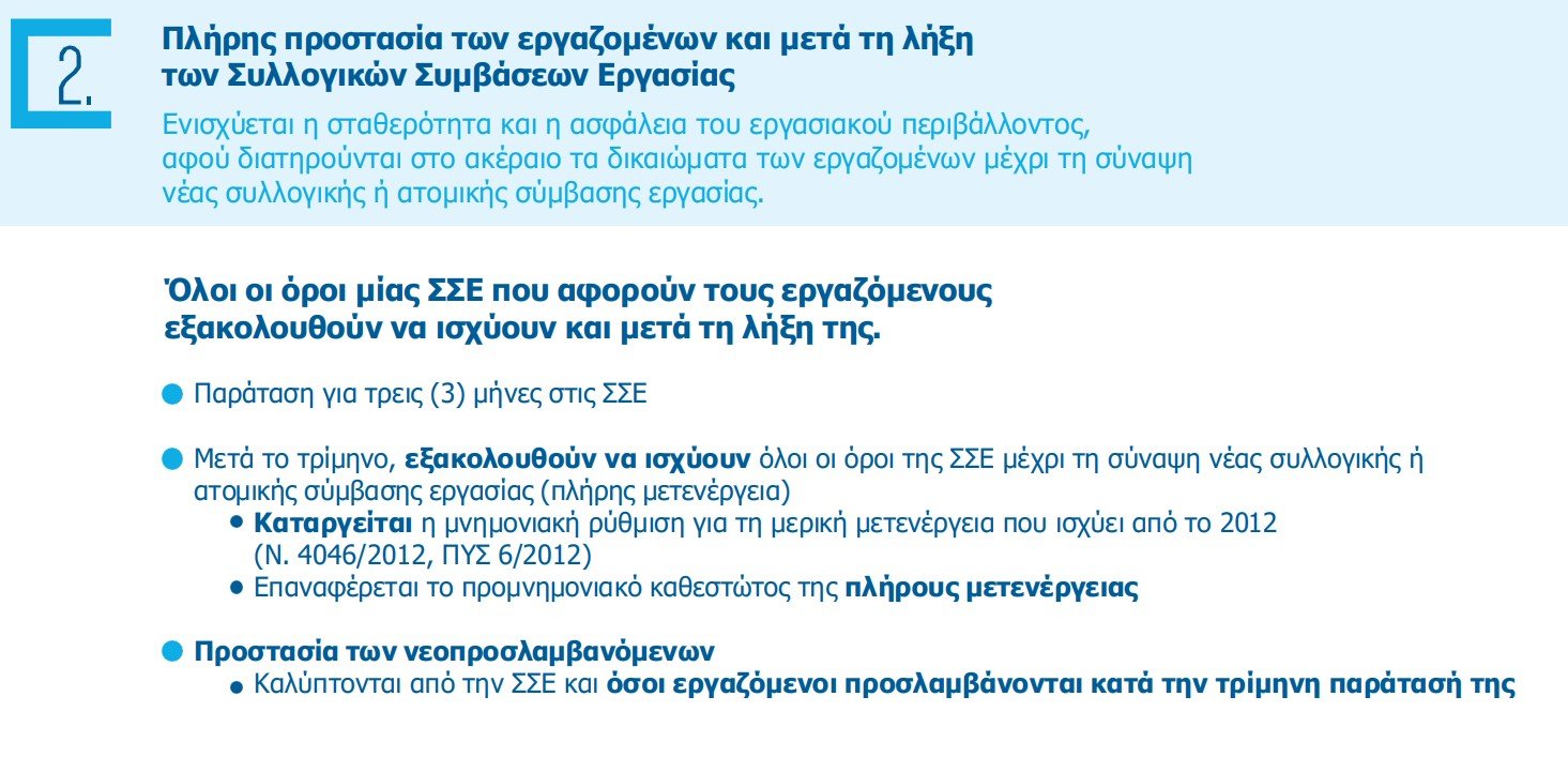 - την πλήρη μετενέργεια όλων των κανονιστικών όρων της ΣΣΕ μετά τη λήξη της τρίμηνης παράτασης,