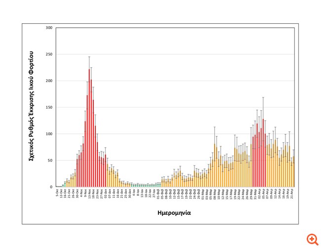 Συγκεκριμένα, στα δείγματα που λαμβάνονται καθημερινά στην είσοδο της Εγκατάστασης Επεξεργασίας Λυμάτων Θεσσαλονίκης, αναφορικά με τις εξορθολογισμένες τιμές σχετικής έκκρισης ιικού φορτίου, η μέση τιμή των δύο πιο πρόσφατων μετρήσεων, δηλαδή της Τετάρτης 21/04 και της Πέμπτης 22/04 είναι: