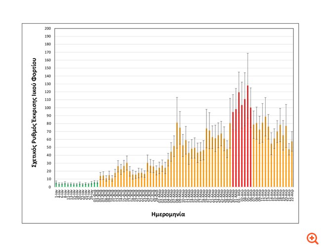Όπως φαίνεται στα διαγράμματα που παρουσιάζει το ΑΠΕ-ΜΠΕ συνεχίζεται η τάση αποκλιμάκωσης που ξεκίνησε στις 7 Απριλίου, με μικρές διακυμάνσεις μεταξύ των ημερήσιων τιμών.