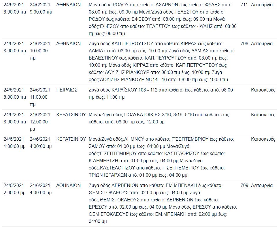 Διακοπή ρεύματος θα υπάρξουν σε συγκεκριμένες περιοχές της Αττικής σήμερα, Πέμπτη 24 Ιουνίου (24/6), σύμφωνα με τη ΔΕΔΔΗΕ.