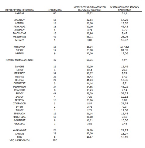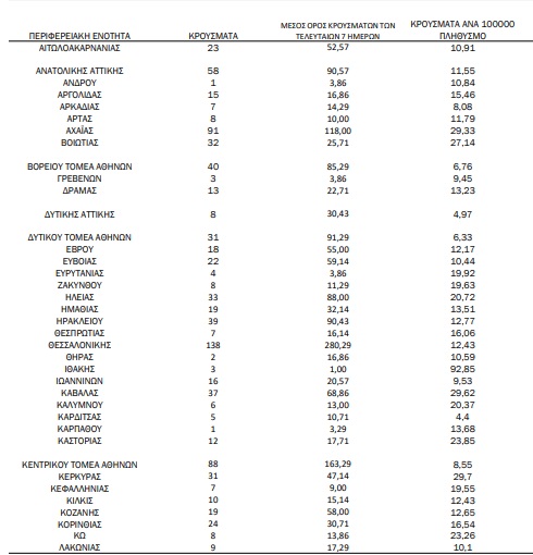 Συγκεκριμένα, από τα συνολικά 1.582 κρούσματα κορονοϊού, στην Αττική καταγράφονται 320 νέα κρούσματα και 138 στη Θεσσαλονίκη.