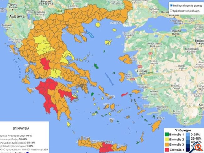 Ο δείκτης θετικότητας για την Ευρυτανία διαμορφώθηκε στις 7 Σεπτεμβρίου στο 3,39% καταγράφοντας εβδομαδιαίο κινητό μέσο όρο κρουσμάτων 25,6 ανά 100.000 κατοίκους.