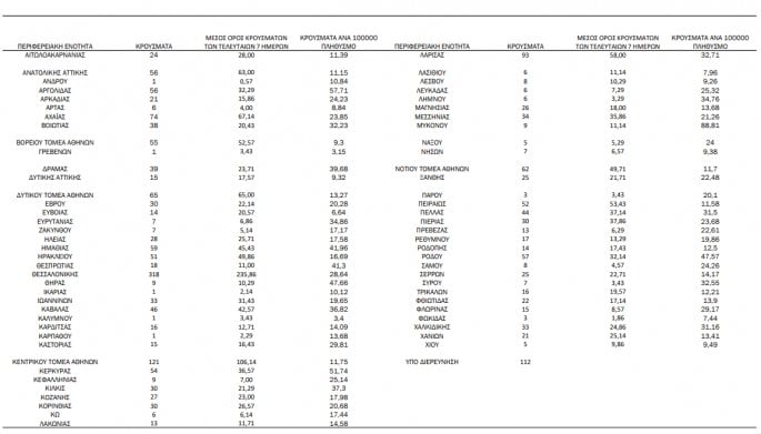 Ακόμα, 74 κρούσματα καταγράφει η Αχαΐα, 59 η Ημαθία, 57 η Ρόδος και 54 η Κέρκυρα.