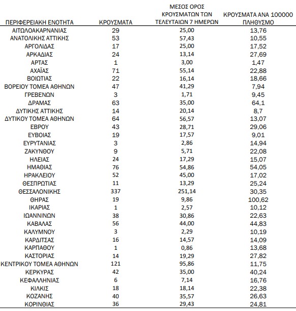 Όπως κάθε μέρα, έτσι και σήμερα η Αττική κατακτά την αρνητική πρωτιά των κρουσμάτων, ωστόσο με πολύ μικρό αριθμό κρουσμάτων. Την ίδια στιγμή, «πονοκέφαλο» στους ειδικούς προκαλούν αρκετές ακόμα περιοχές της Ελλάδας.