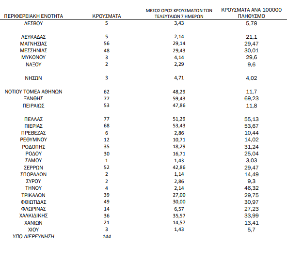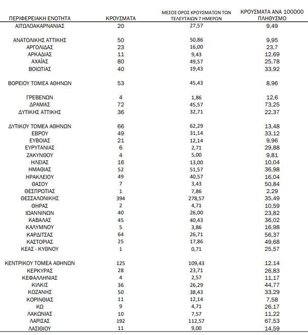 Όπως κάθε μέρα, έτσι και σήμερα η Αττική κατακτά την αρνητική πρωτιά των κρουσμάτων, ωστόσο με πολύ μικρό αριθμό κρουσμάτων. Την ίδια στιγμή, «πονοκέφαλο» στους ειδικούς προκαλούν αρκετές ακόμα περιοχές της Ελλάδας.