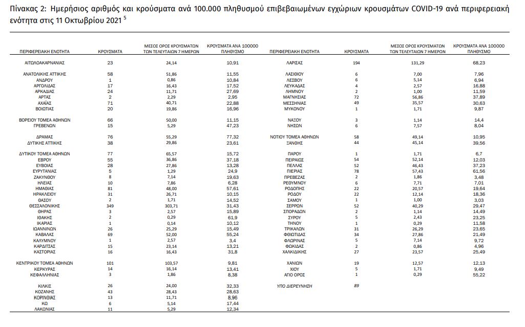 Συγκεκριμένα, από τα συνολικά 2.383 νέα κρούσματα κορονοϊού, στην Αττική καταγράφονται 458 κρούσματα και στη Θεσσαλονίκη 349. Στη Λάρισα καταγράφονται 194 νέα κρούσματα κορονοϊού.