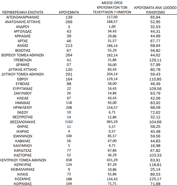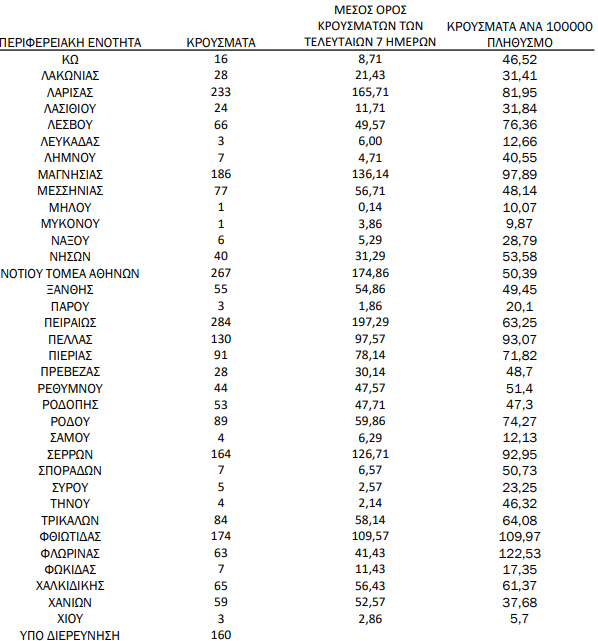 Τέλος, 160 κρούσματα βρίσκονται υπό διερεύνηση.