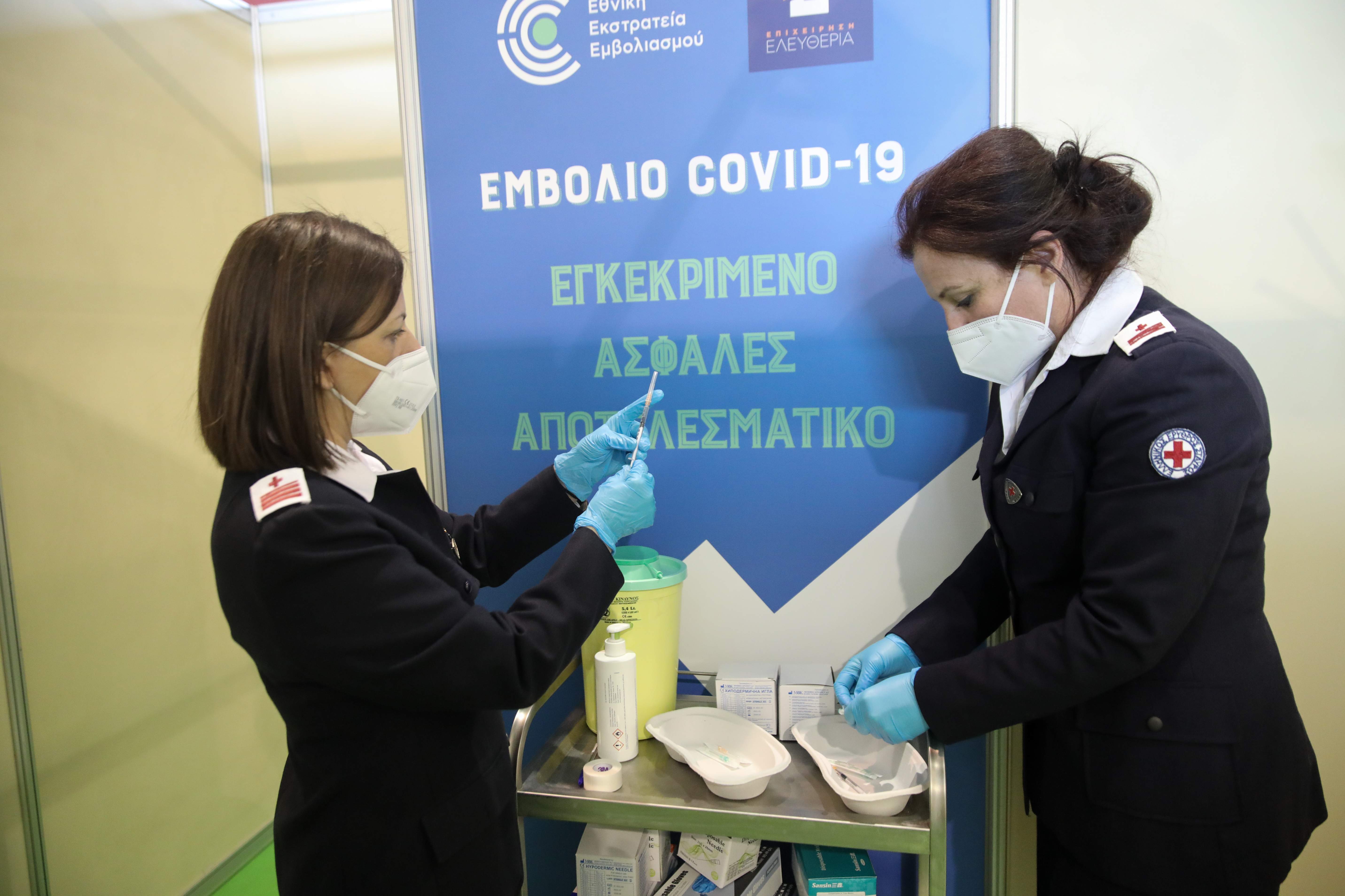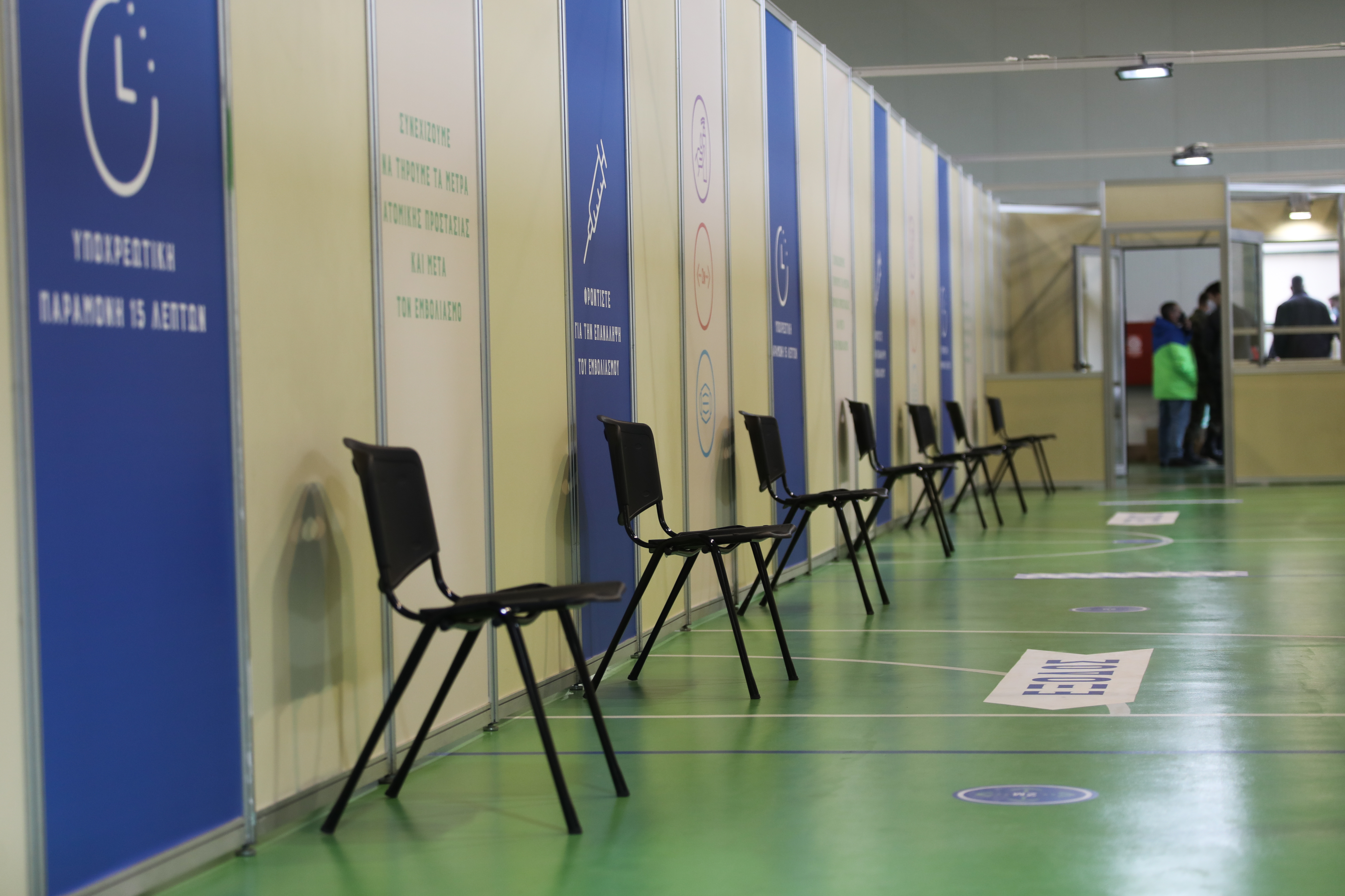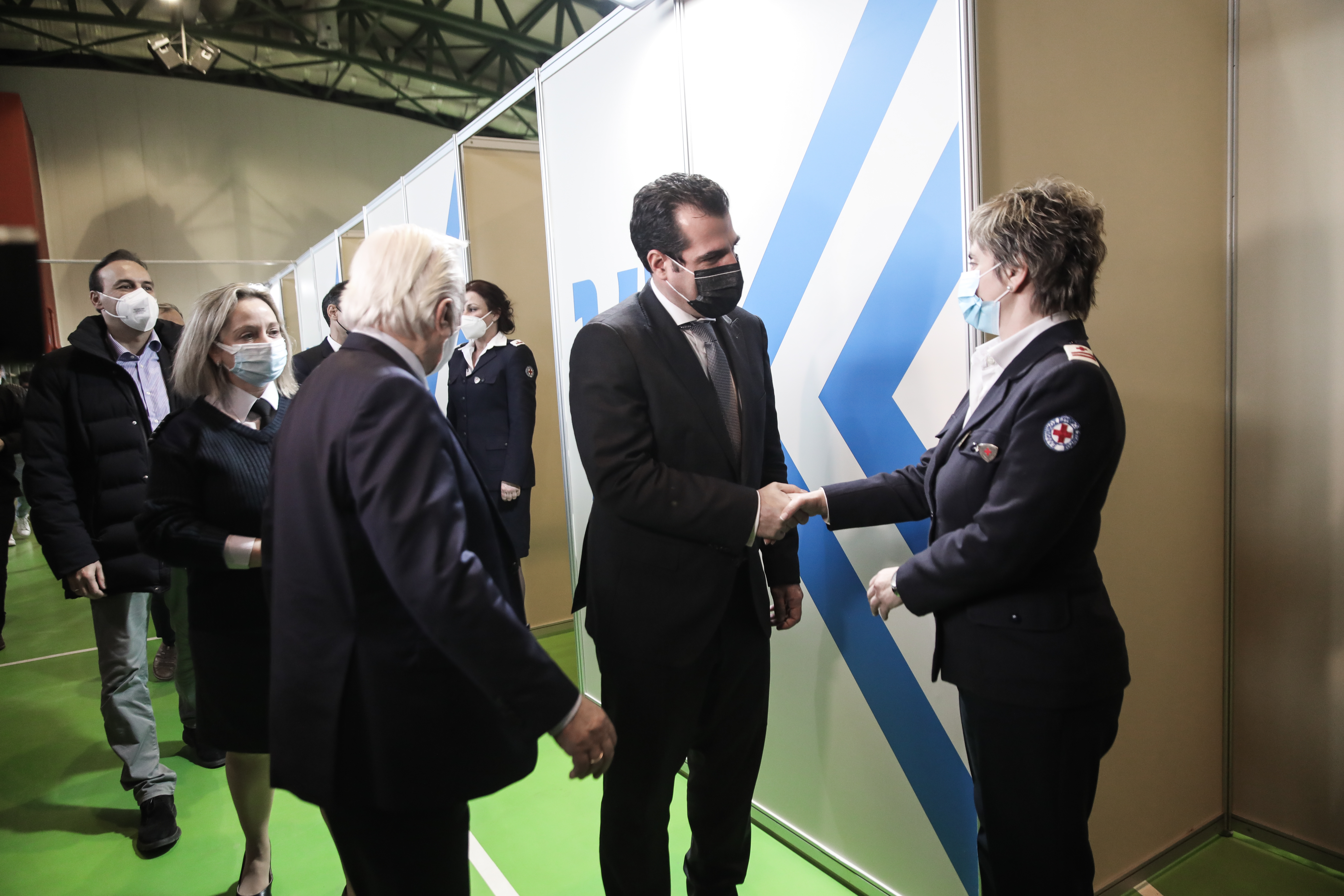 Εγκαινιάστηκε σήμερα το μεσημέρι το νέο mega Εμβολιαστικό Κέντρο στη Γλυφάδα, παρουσία του Υπουργού Υγείας Θάνου Πλεύρη. Το νέο mega Εμβολιαστικό Κέντρο, το οποίο στελεχώνουν υγειονομικοί και λοιπό προσωπικό από τον Ελληνικό Ερυθρό Σταυρό και τις Ένοπλες Δυνάμεις, διαθέτει 16 εμβολιαστικές γραμμές και θα έχει τη δυνατότητα να εξυπηρετεί καθημερινά 1.500-1.800 πολίτες.