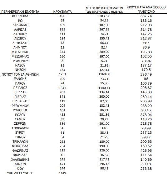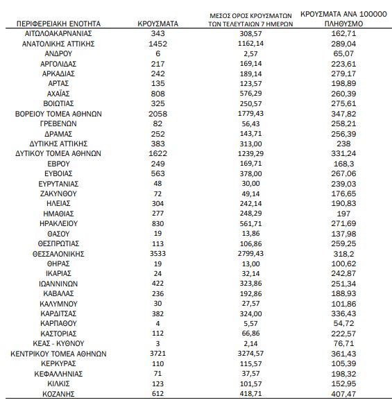 Αναλυτικότερα τα κρούσματα στις περιφερειακές ενότητες που ανήκουν στην Αττική: