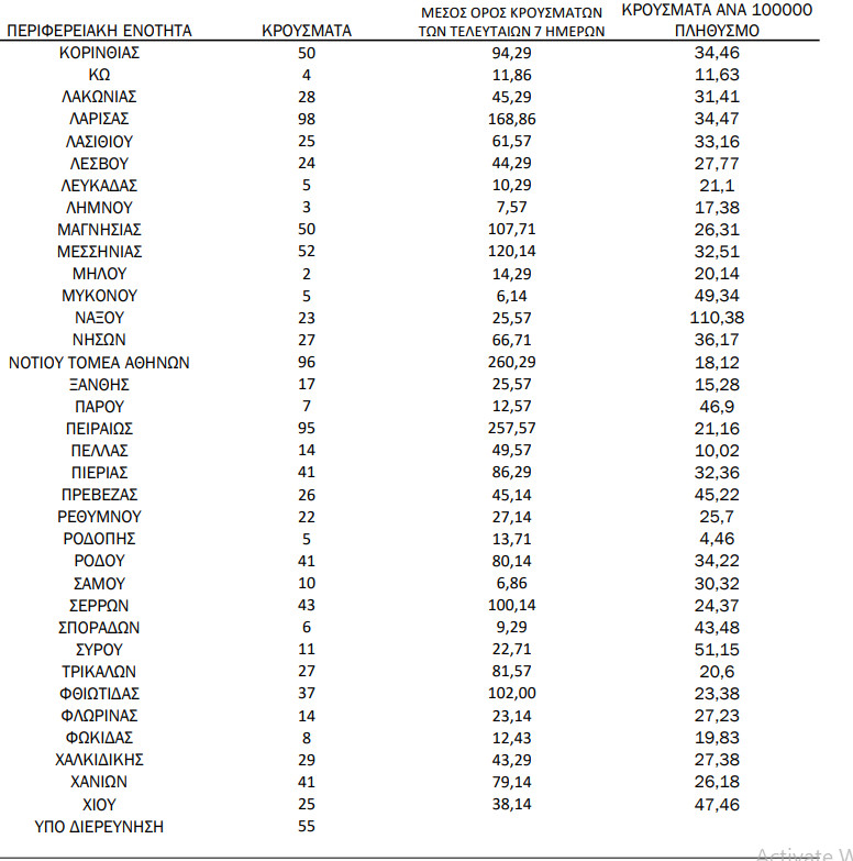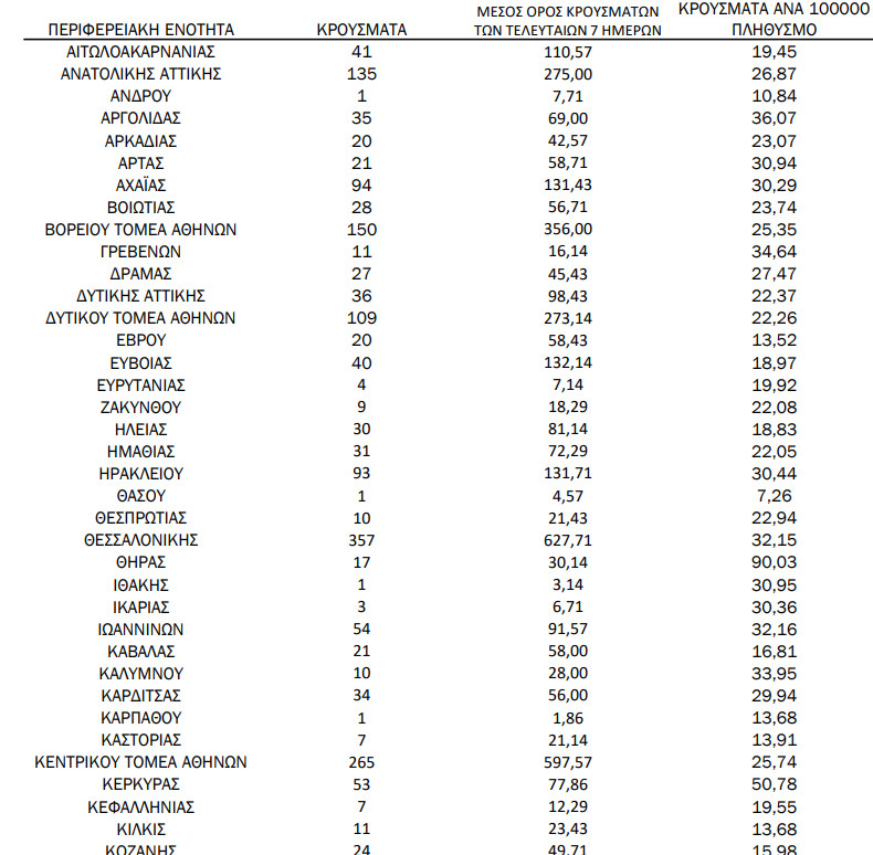 Αναλυτικά, η γεωγραφική κατανομή των κρουσμάτων έχει ως εξής: