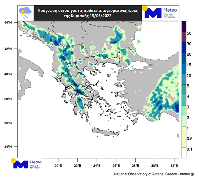 Εικόνα: Ο υετός που αναμένεται τις πρώτες απογευματινές ώρες της Κυριακής 15/05