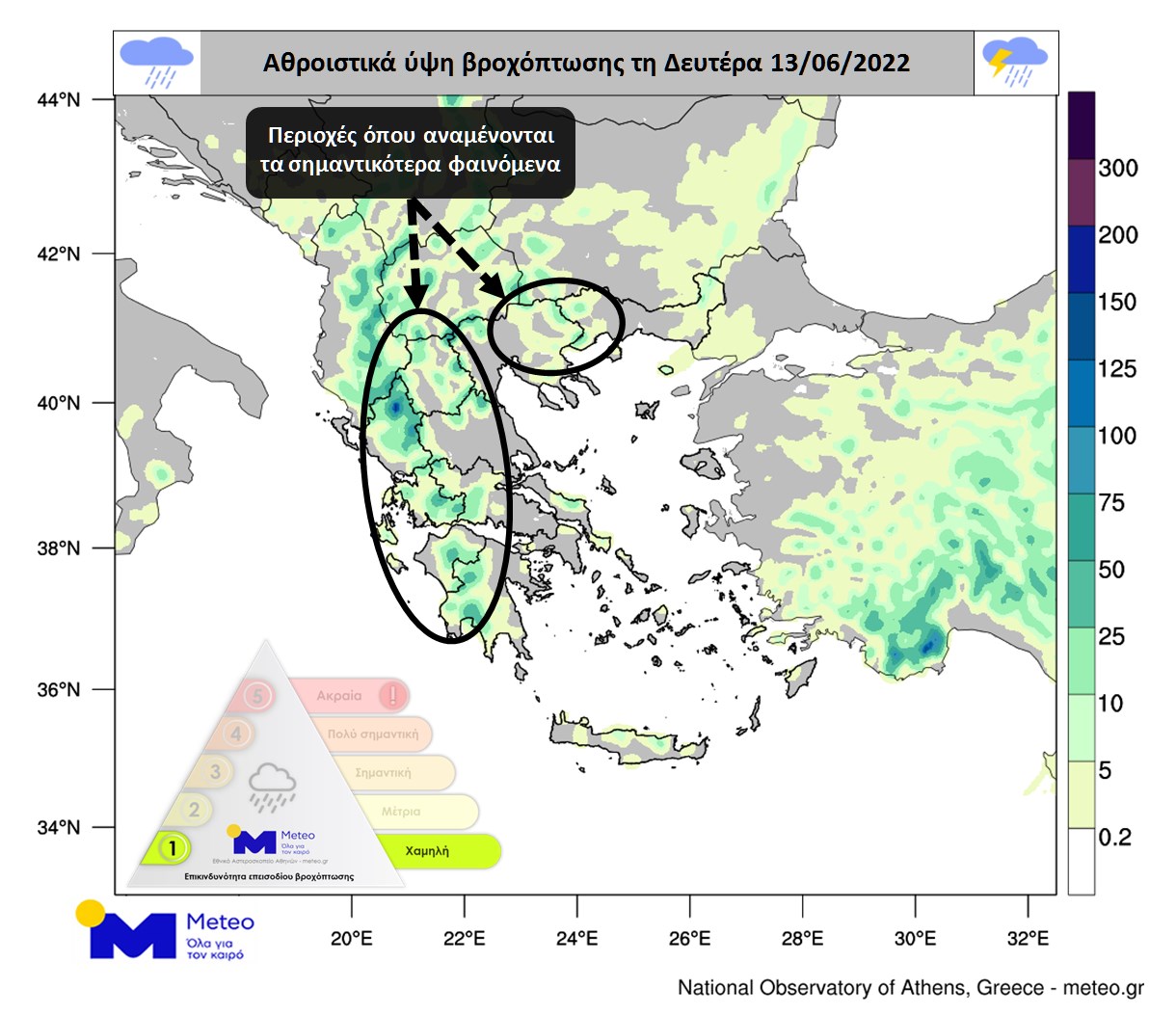 Τα σημαντικότερα φαινόμενα θα εντοπίζονται στα δυτικά τμήματα της χώρας, καθώς και σε περιοχές της Κεντρικής και Βόρειας Ελλάδας. Το αναμενόμενο επεισόδιο είναι Κατηγορίας 1 όσον αφορά τον πενταβάθμιο Δείκτη Επικινδυνότητας Επεισοδίου Βροχόπτωσης (Regional Precipitation Index - RPI) του meteo.