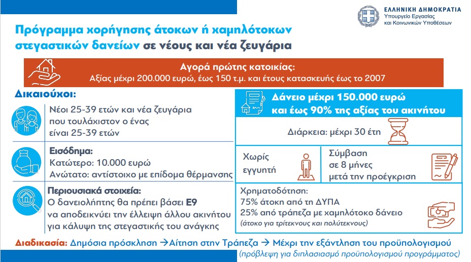 1. Πρόγραμμα χορήγησης χαμηλότοκων στεγαστικών δανείων για αγορά πρώτης κατοικίας