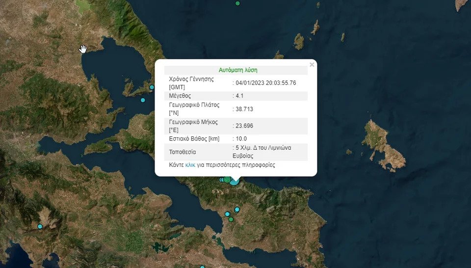 Σεισμική δόνηση 4,1 Ρίχτερ σημειώθηκε στις 22:03 της Τετάρτης στη βόρεια Εύβοια.
