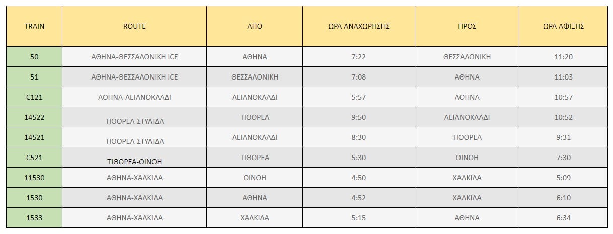 Σε ακυρώσεις δρομολογίων προχωρά και αύριο Πέμπτη 9 Φεβρουαρίου η Hellenic Train κατόπιν ενημέρωσης από την Πολιτική Προστασία για την εξέλιξη των καιρικών φαινομένων και σε συνεννόηση με το Διαχειριστή Υποδομής.