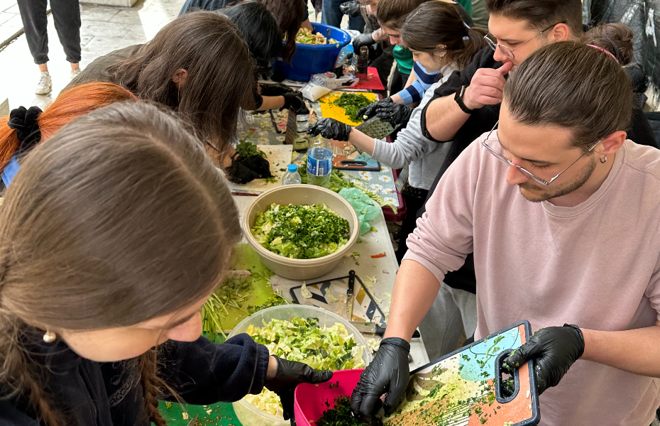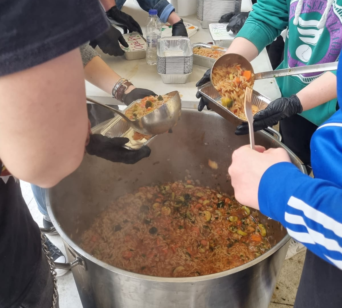 Το μαγείρεμα ξεκίνησε από νωρίς με χαμόγελο και το γεύμα ήταν vegan και πιο συγκεκριμένα κριθαρώτο με λαχανικά και σαλάτα.