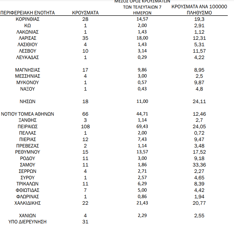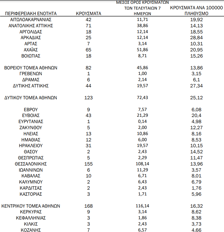 Αναλυτικά η κατανομή των κρουσμάτων στη χώρα σήμερα: