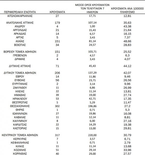 Οι νέοι θάνατοι ασθενών με COVID-19 είναι 64, ενώ από την έναρξη της επιδημίας έχουν καταγραφεί συνολικά 7.361 θάνατοι. Το 95.8% είχε υποκείμενο νόσημα ή/και ηλικία 70 ετών και άνω.