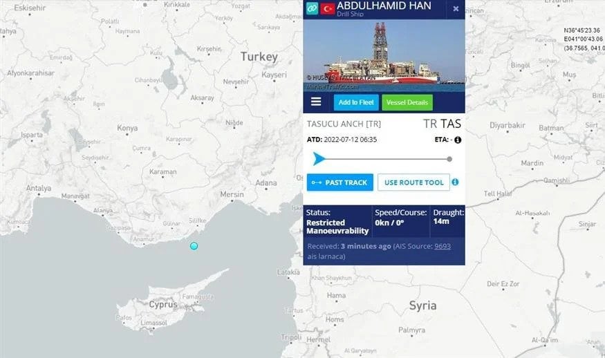 Στην Ανατολική Μεσόγειο και συγκεκριμένα βόρεια της Κύπρου βρίσκεται το τουρκικό γεωτρύπανο «Αμπντουλχαμίτ Χαν», το οποίο η Άγκυρα έβγαλε στη θάλασσα νωρίτερα του αναμενόμενου σε μία προσπάθεια να αιφνιδιάσει τις ελληνικές Αρχές, καθώς πριν από λίγα 24ωρα ο υπουργός Ενέργειας της χώρας είχε ανακοινώσει ότι το γεωτρύπανο θα ξεκινήσει έρευνες στις 9 Αυγούστου.