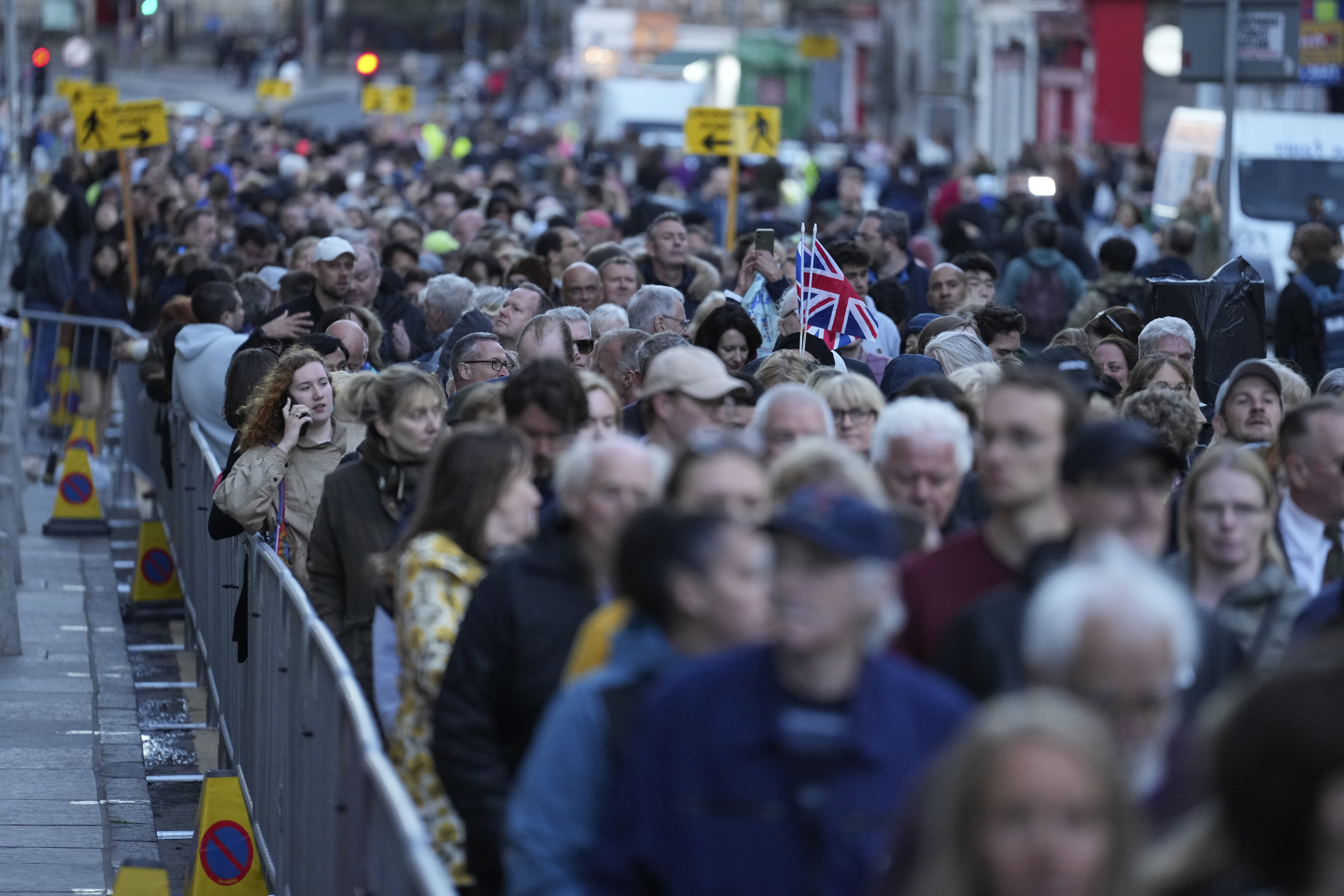 Χιλιάδες άνθρωποι περιμένουν υπομονετικά για να μπουν στον ναό του Αγίου Αιγιδίου και να τιμήσουν τη βασίλισσα, τέσσερις ημέρες μετά τον θάνατό της, σε ηλικία 96 ετών.