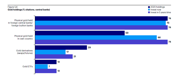 Η έρευνα έδειξε ότι ένα «σημαντικό ποσοστό» των κεντρικών τραπεζών ανησυχεί για το προηγούμενο που δημιουργήθηκε. Σχεδόν το 60% των ερωτηθέντων δήλωσε ότι είχε καταστήσει τον χρυσό πιο ελκυστικό, ενώ το 68% διατηρούσε αποθέματα στο εσωτερικό (από 50% το 2020).