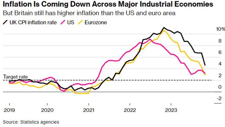 Τα στοιχεία επέτρεψαν στον πρωθυπουργό Ρίσι Σουνάκ, που βρίσκεται σε δυσχερή θέση, να δηλώσει νικητής στον στόχο του να μειώσει τον πληθωρισμό στο μισό το 2023.
