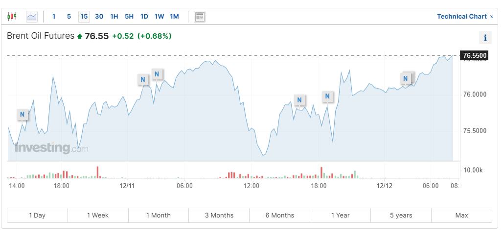 Tο Brent διαπραγματεύεται πάνω από τα 76 δολάρια το βαρέλι μετά το πλήγμα που δέχθηκε το δεξαμενόπλοιο Strinda σε περιοχή που ελέγχεται από τους Χούθι στην Υεμένη, όπως ανακοίνωσε ο αμερικανικός στρατός.
