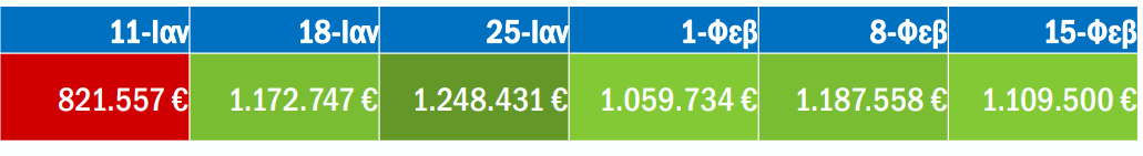 11-Ιαν 18-Ιαν 25-Ιαν 1-Φεβ 8-Φεβ 15-Φεβ