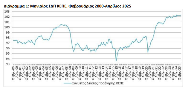 Σύμφωνα με την πιο πρόσφατη μέτρηση, ο ΣΔΠ ΚΕΠΕ κατέγραψε άνοδο για τον Απρίλιο του 2025, έπειτα από την πτώση που είχε σημειωθεί στην προηγούμενη περίοδο αναφοράς. Ο δείκτης παραμένει σε υψηλά επίπεδα για το σύνολο της περιόδου εξέτασης, γεγονός που ενδεχομένως υποδηλώνει είτε φυσιολογική ενδιάμεση μεταβλητότητα, είτε μια πρόδρομη ένδειξη σταθεροποίησης ή ακόμη και βελτίωσης των μελλοντικών οικονομικών συνθηκών, παρά τους επίμονους γεωπολιτικούς κινδύνους.
