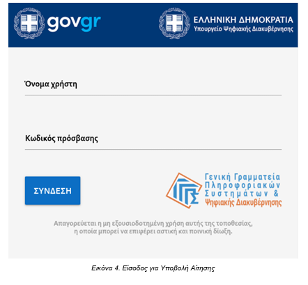 Επιλέγοντας «Υποβολή Αίτησης», εμφανίζεται η παρακάτω οθόνη στην οποία συμπληρώνονται οι προσωπικοί κωδικοί TAXISnet:
