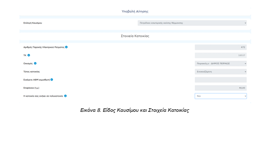 - Ένδειξη (Ναι / Όχι) για το αν η κατοικία σας ανήκει σε πολυκατοικία (αφορά μόνο την περίπτωση καυσίμου πετρελαίου εσωτερικής καύσης θέρμανσης).