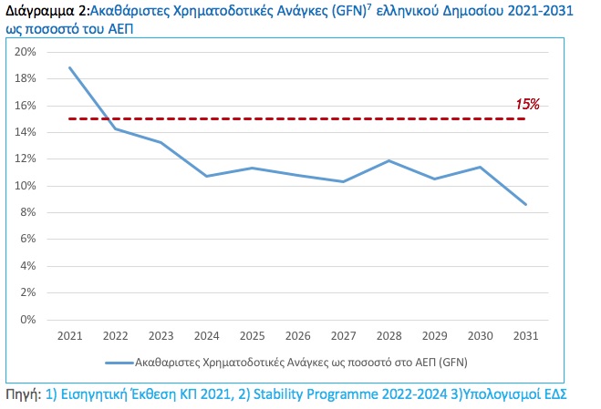 β) το ύψος των Ακαθάριστων Χρηματοδοτικών Αναγκών (GFN) σε όρους ΑΕΠ και